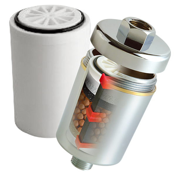 Purificateurs pour douche et salle de bain. Ces équipements permettent de purifier et d’énergiser l’eau par le passage au travers de différents éléments comme le charbon actif, KDF, billes de céramique, ….